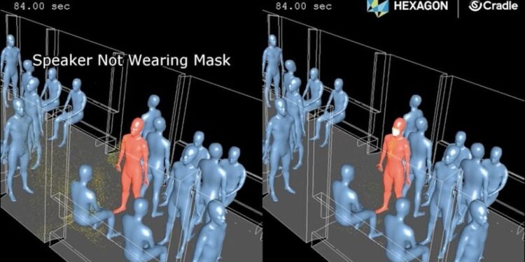 MSC Software has developed a 3D simulation of the risks of coronavirus infection in a subway wagon with and without mask.