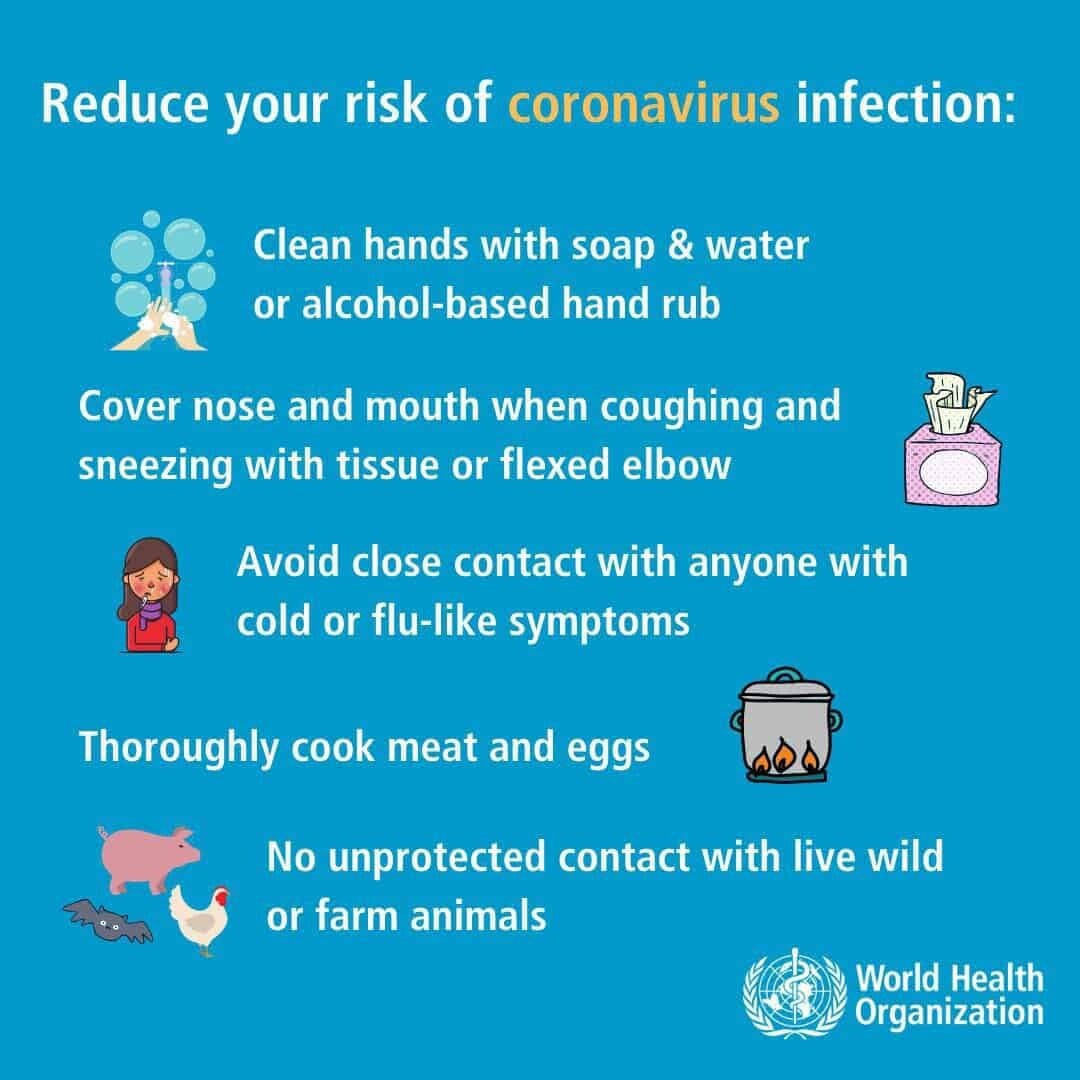 COVID-19 is still affecting most people in China with some outbreaks in other countries. Most people who become infected experience mild illness and recover, but it can be more severe for others. Take care of your health and protect others by doing the following: