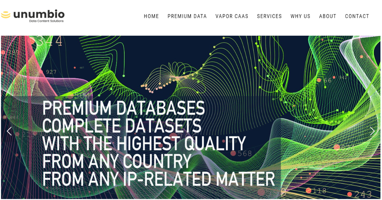 If a company already has IP datasets in its database, there is no need to start from scratch. Even if the data is out of date, full of holes, impossible to search, or impossible to integrate, it is not a lost cause thanks to VAPOR CaaS by Unumbio. With VAPOR CaaS, they can bring existing datasets back to life with the same expertise they apply to the PREMIUM DATABASES, completing and enriching the data to the highest quality standards for a far lower price tag.